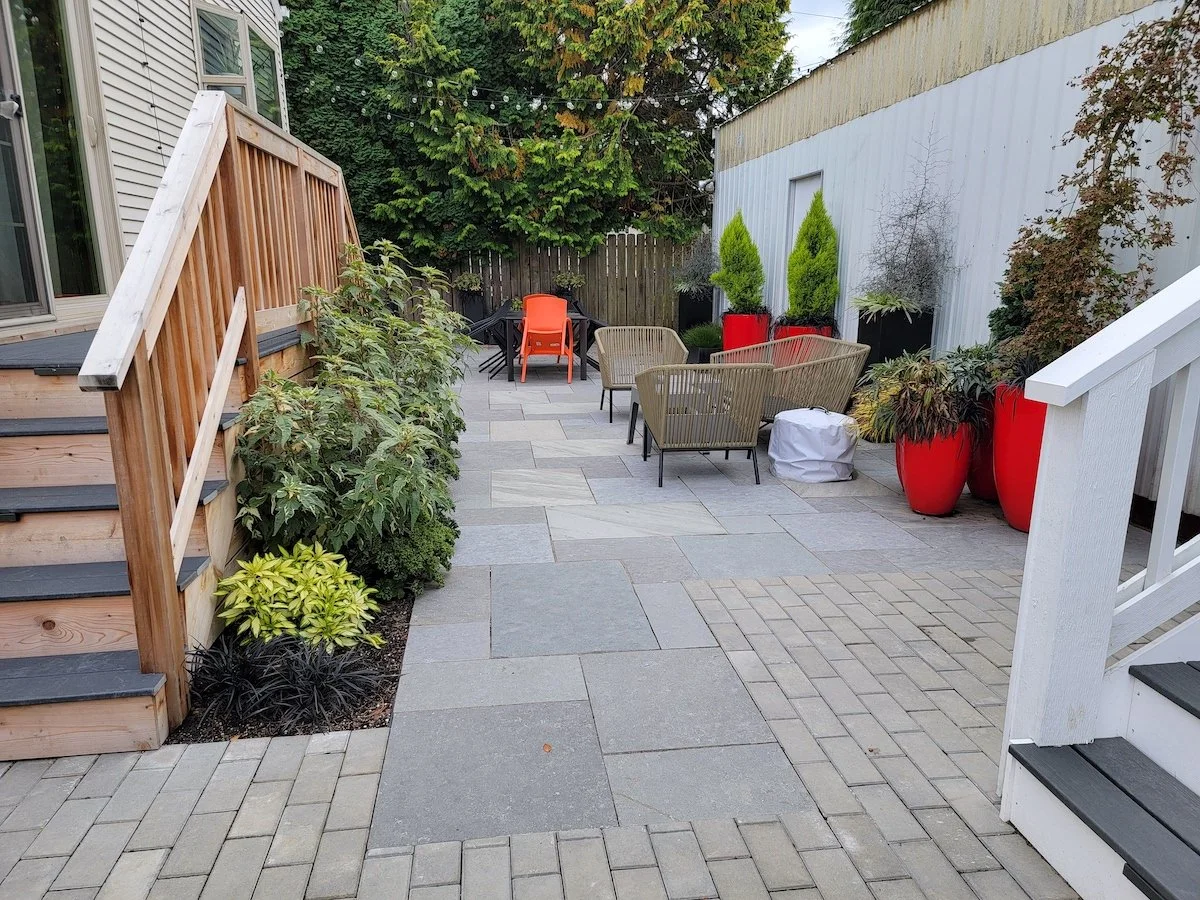 This project involved a significant expansion of the driveway to create ample parking space and improve access. Accent pots were strategically placed to enhance the overall aesthetic, adding points of interest throughout the area. We also made additional improvements to seamlessly accommodate a new backyard cottage, ensuring it integrates functionally and stylistically with the existing outdoor space.